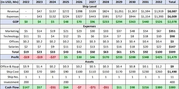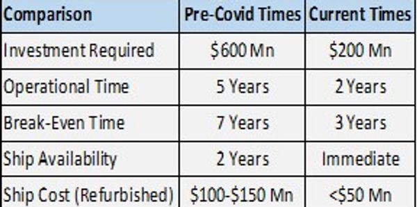 The entire business plan is on the basis of Covid having disturbed the world economics. The overall cost of investment in starting a business this large has shrunk to 33% of what it normally was. New ships are not available for 10 years due to pre-bookings. You are not only to invest at the lowest point in the business, but have view to the opening up and making a neat profit on the overall spends.